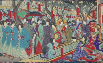 festivities under plum trees at naka-no-cho in the new yoshiwara
